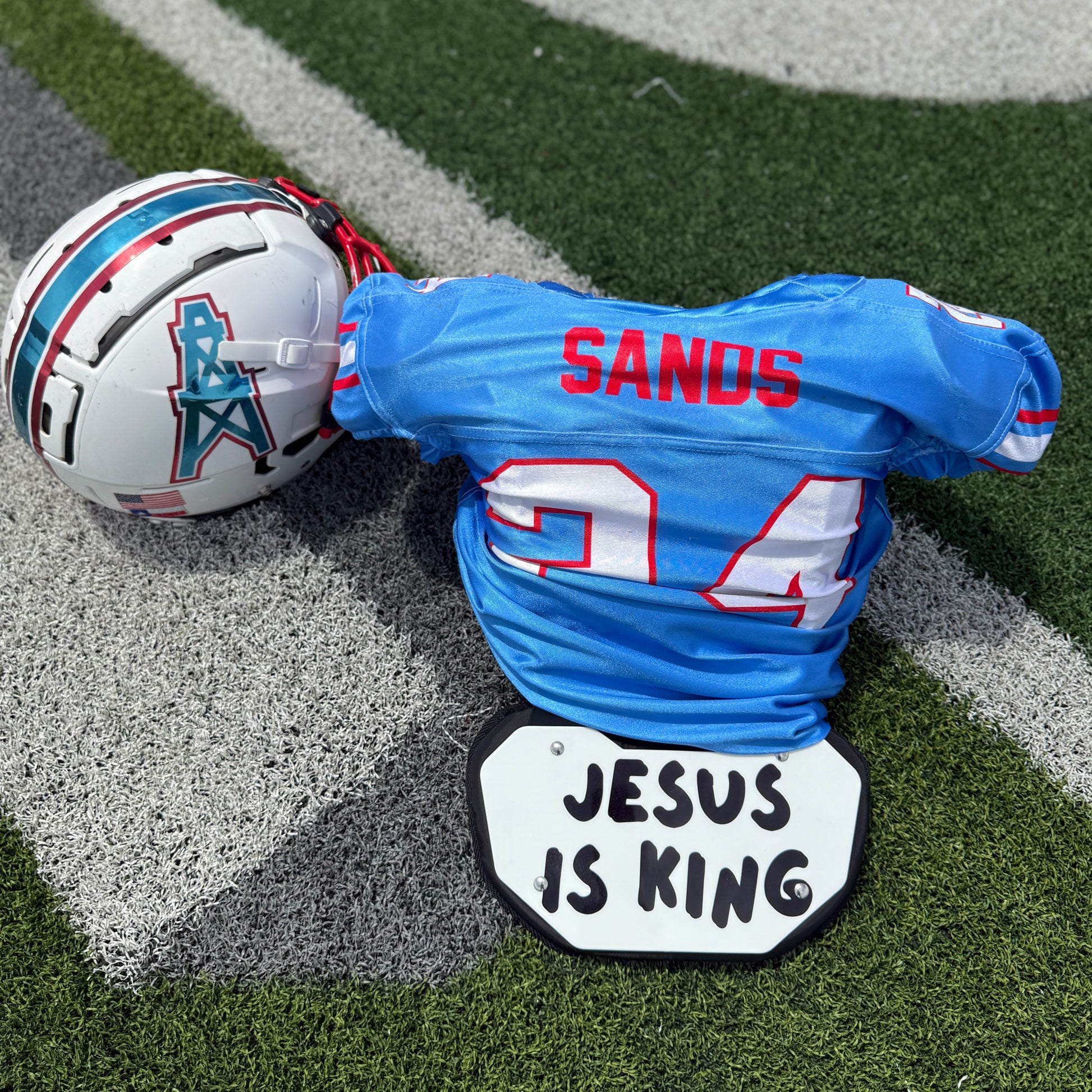 🏈 Faith-Driven Design: Bold “Jesus Is King” lettering makes a powerful statement on and off the field.
